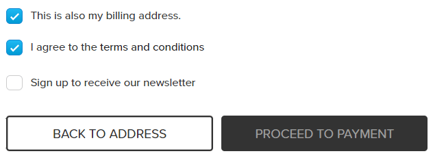 Select 'I agree to the Terms and Conditions' and select 'Sign up to receive our Newsletter' to ensure that you are aware of our policies and any promotions we have running.