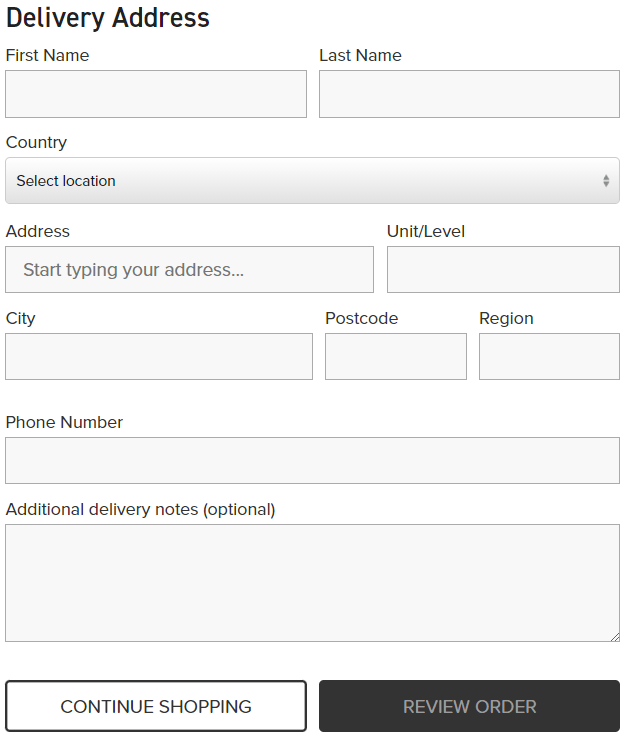 The delivery address part will appear below. Fill out your details accordingly. Freight will be added to the order by selecting your country location.