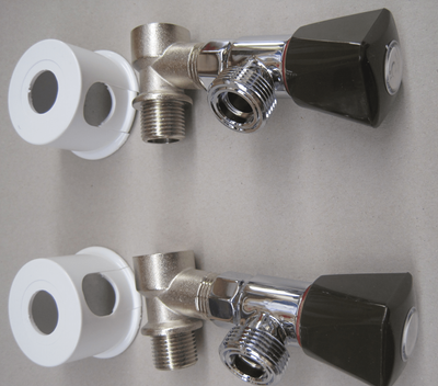Existing wall taps fit to this unit. Remove taps - fit these. Swivel head for washing machine connection