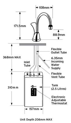 - Easy to install 2.5 litre stainless steel tank fitted under sink